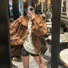 新款 麂皮絨機車美拉德夾克外套女秋冬復古休閑寬松慵懶翻領廓形感