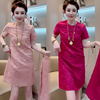 氣質(zhì)圓領(lǐng)短袖 網(wǎng)紅爆款 重工提花國風連衣裙女2025夏新款 時尚 中長裙