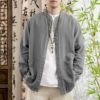 草民麻衣男士 上衣男新中式 春秋棉麻外套休閑寬松立領(lǐng)夾克苧麻襯衫