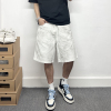 男直筒寬松高街五分褲 夏季 美式 休閑痞帥復古做舊臟臟白色牛仔短褲