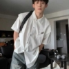 夏季 解構(gòu)壓褶短袖 男款 設計感小眾痞帥高級感男裝 襯衫 白色襯衣外套