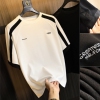字母刺繡 時(shí)尚 男士 純色OS版 夏季 百搭圓領(lǐng)短袖 口碑款 T恤 插肩袖