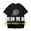 400斤打底衫 潮胖子燙鉆純棉短袖 T恤男潮牌加肥加大碼 寬松閃磚半袖