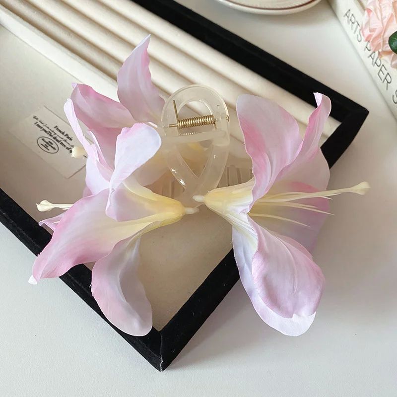 Claw White Hair Large Acrylic Flowers Pink Fabric Clips for抖音小紅書同款網紅熱銷 - 發(fā)飾 - 淘寶網