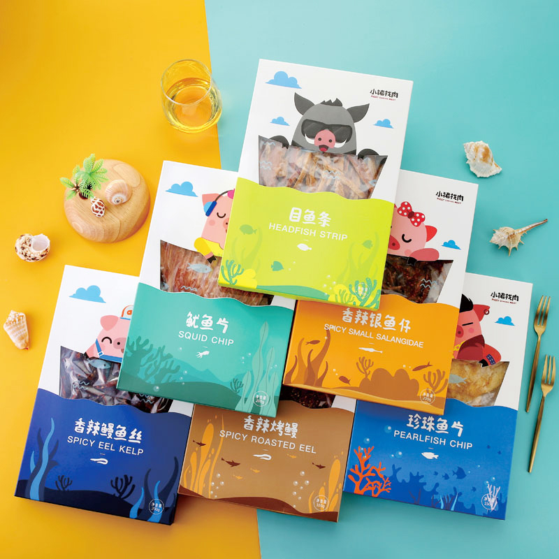 小豬找肉魚干系列魷魚片目魚條香辣鰻魚肉絲即食廈門特產(chǎn)組合套裝