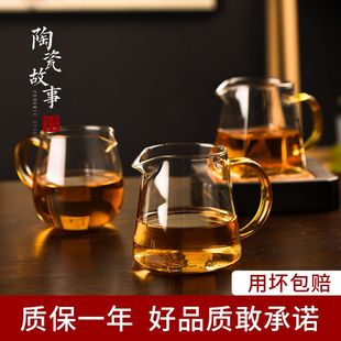 加厚側把公杯分茶器功夫茶具耐熱玻璃公道杯茶漏套裝 茶海木把公杯