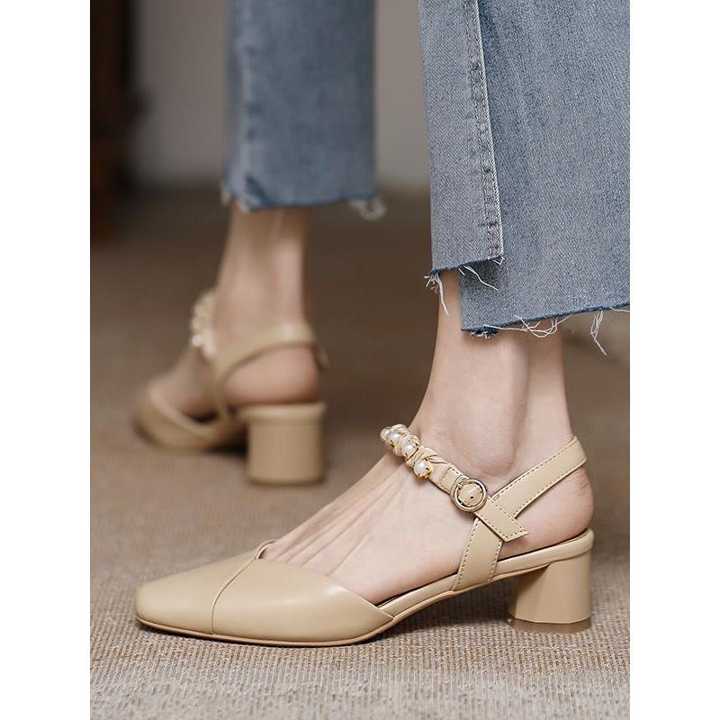 新款 子女夏季 子粗跟一字帶包頭涼鞋 簡約單鞋 原野方頭中空珍珠時(shí)尚抖音小紅書同款網(wǎng)紅熱銷 - 時(shí)裝涼鞋 - 淘寶網(wǎng)