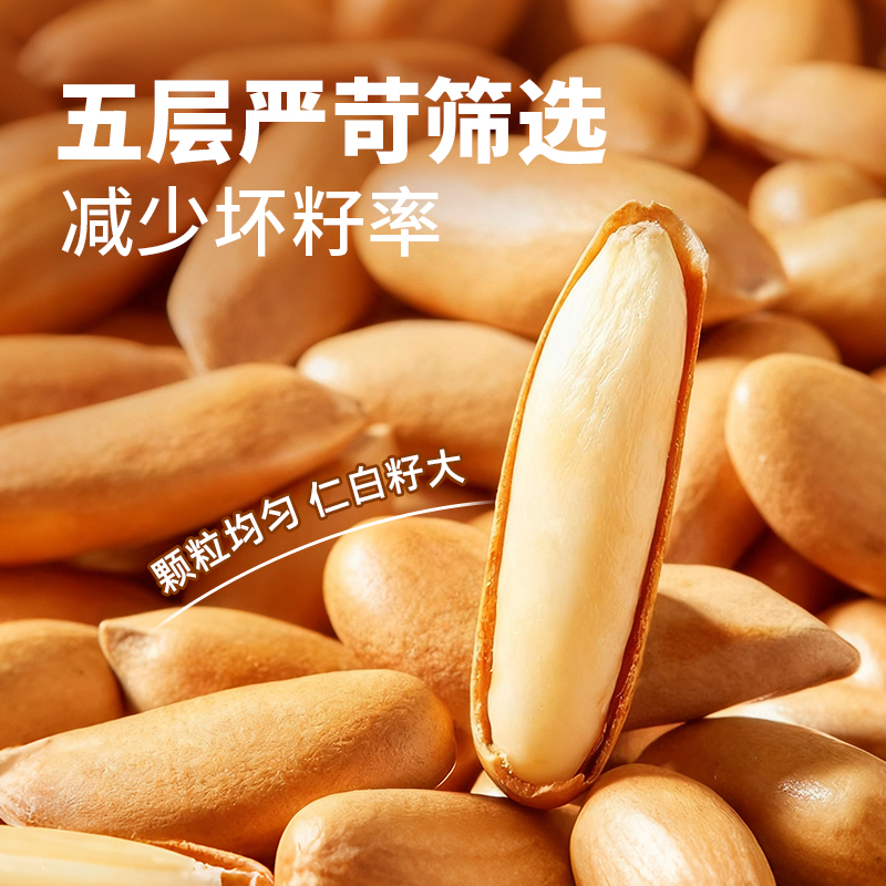 百草味東北松子堅果手剝干果仁休閑零食特產(chǎn)小吃手拔開口大顆