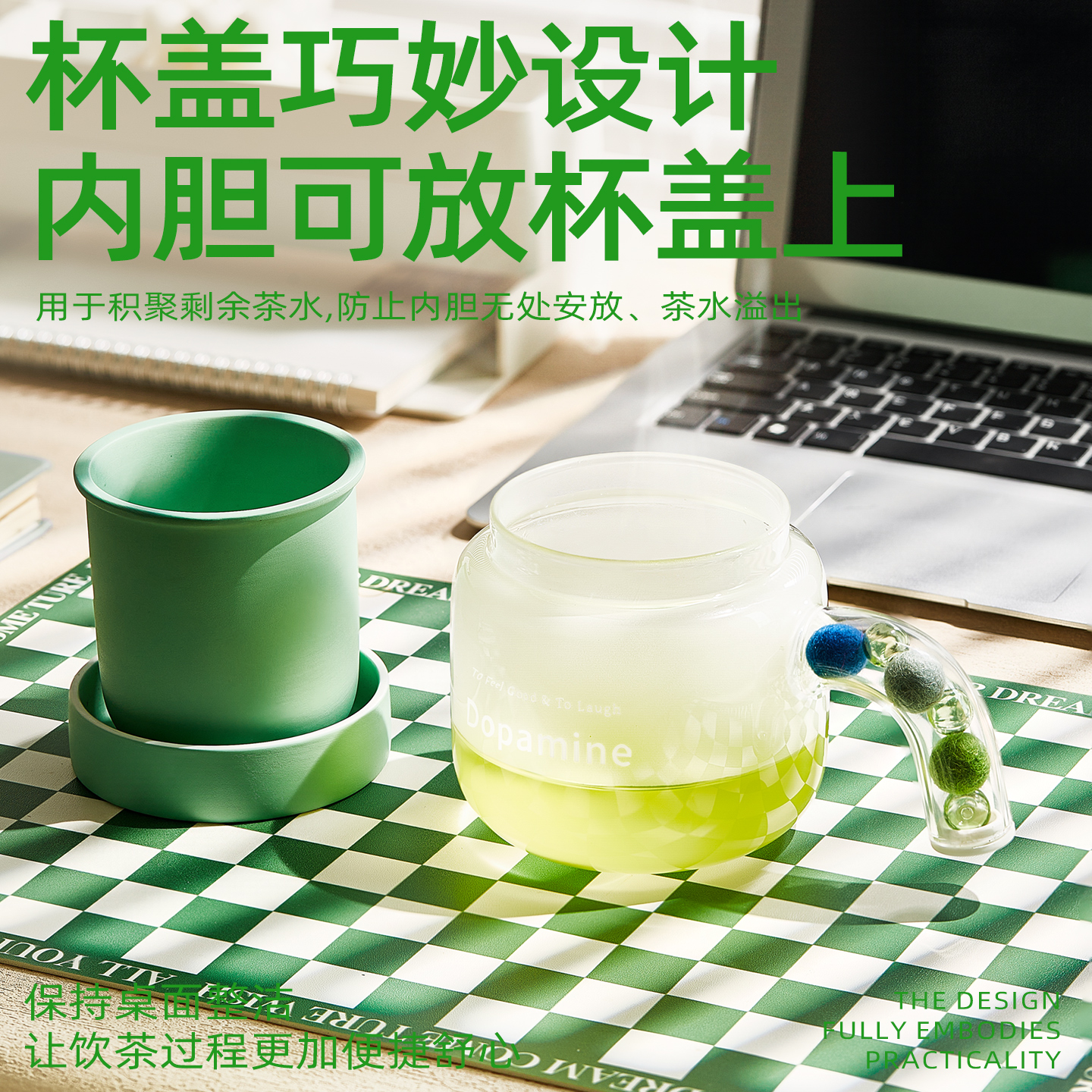 木笙玩物多巴胺茶水分離泡茶杯大容量辦公室玻璃馬克杯帶蓋送禮物