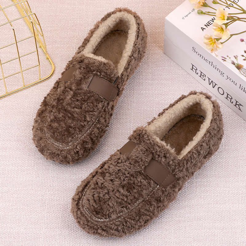 子平底棉鞋 毛毛鞋 加絨百搭豆豆鞋 一腳蹬女鞋 女冬外穿網(wǎng)紅2025新款