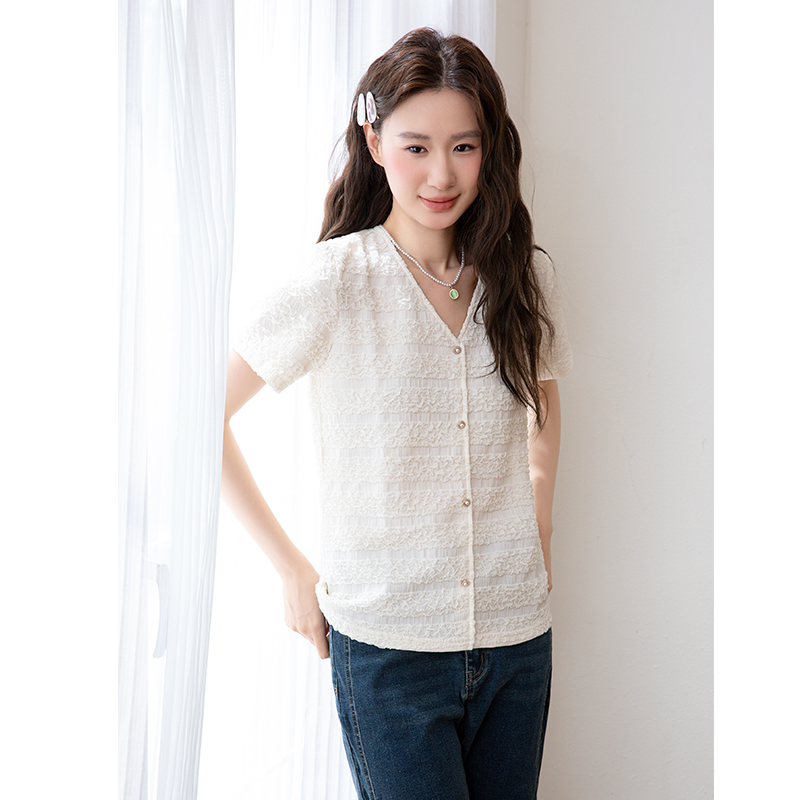 女裝 顯瘦胖MM上衣女套頭針織V領(lǐng)短袖 新款 小衫 綺娑大碼 2025年夏季