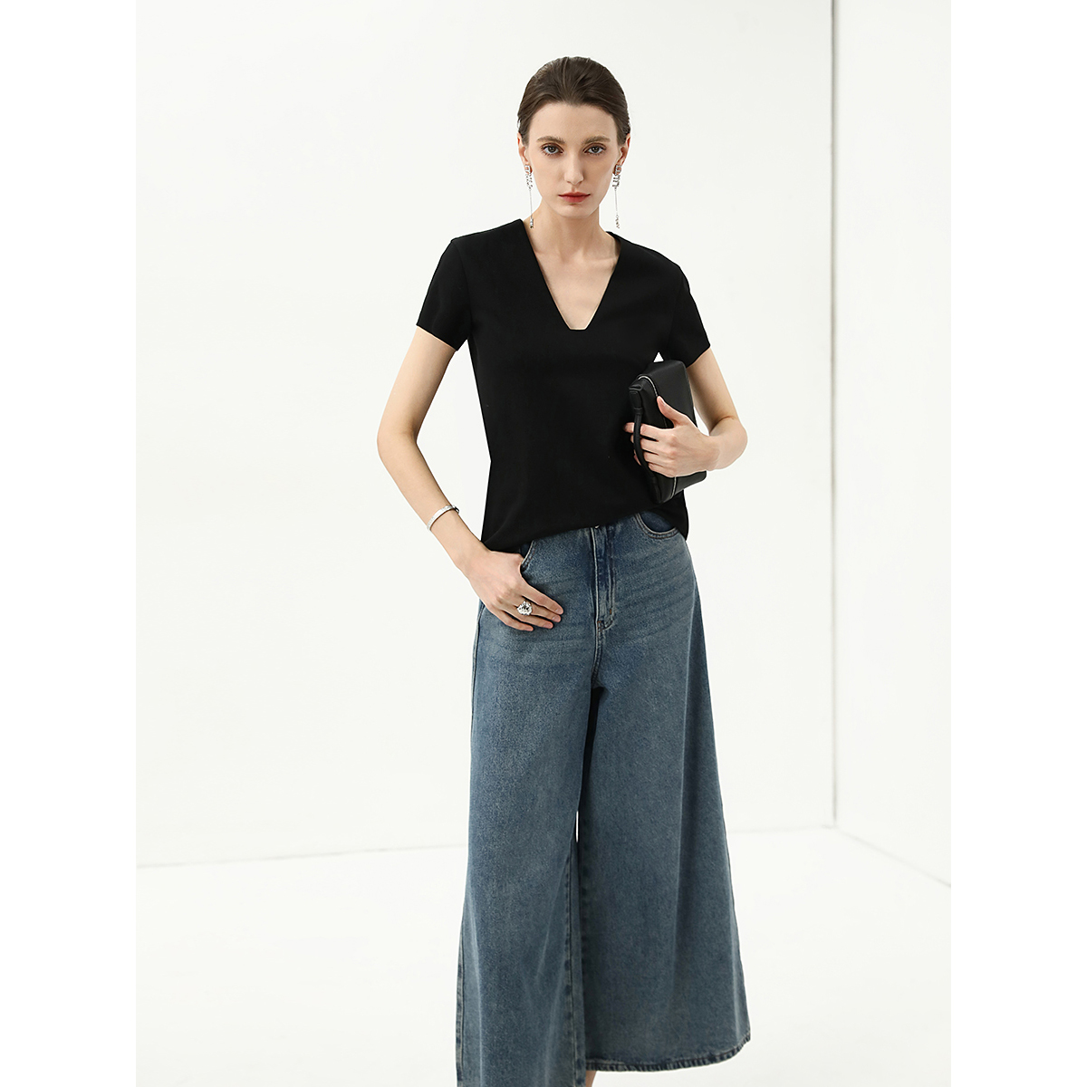COCOBELLA休閑黑色V領(lǐng)正肩短袖 TS7010 T恤女夏氣質(zhì)通勤半袖