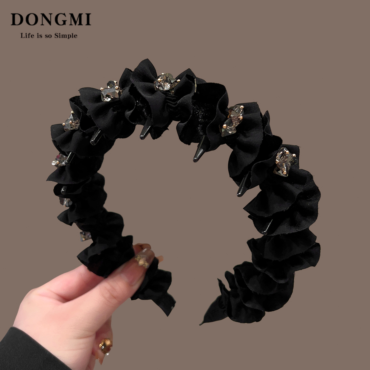 高級感水鉆黑色發(fā)箍女2025新款 褶皺高顱頂頭箍帶齒防滑發(fā)卡頭飾