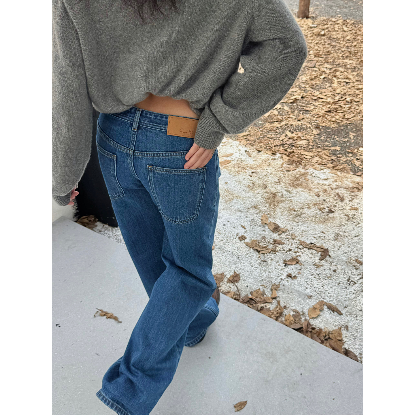 質感百棉立挺中藍低腰直筒牛仔長褲 SpenPack 垂感滿分修飾腿型