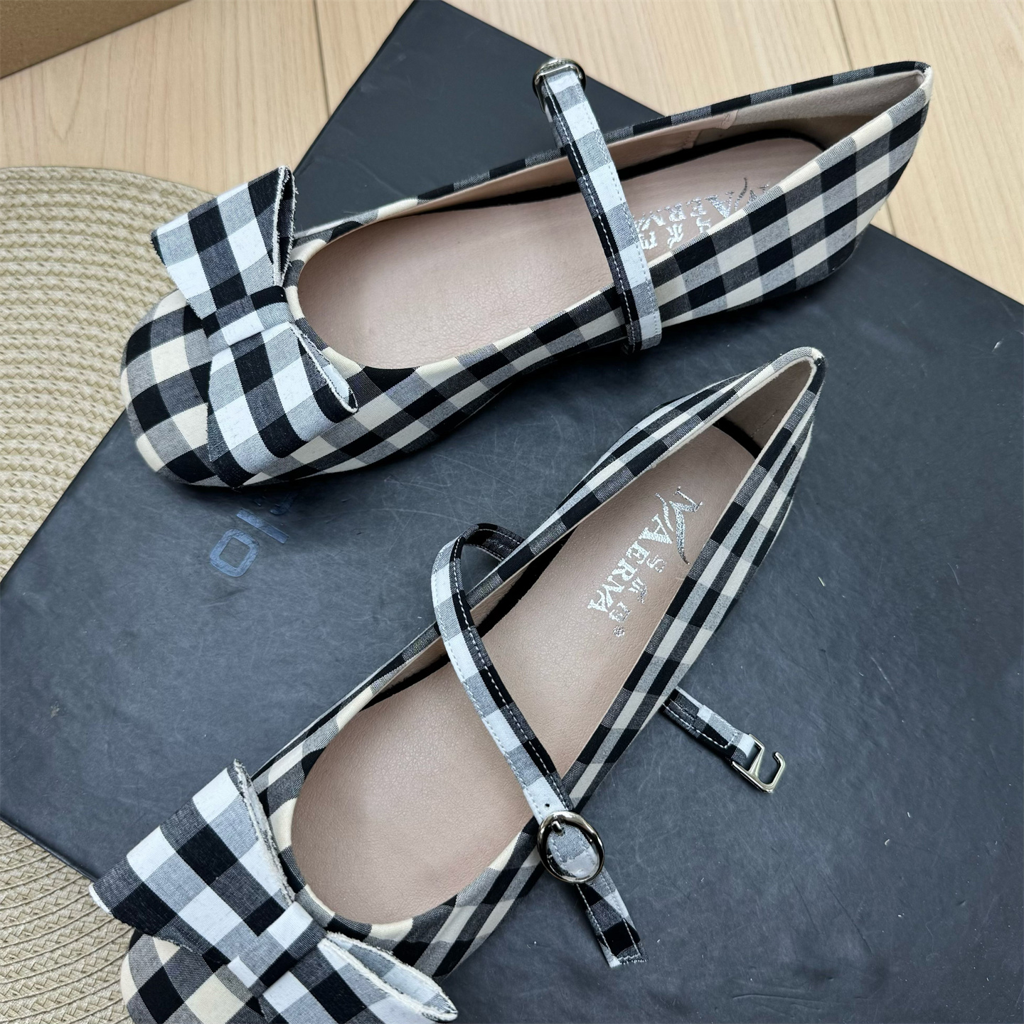 子平底鞋 2025新款 復(fù)古一字扣帶方頭蝴蝶結(jié)瑪麗珍鞋 女拼色單鞋 法式
