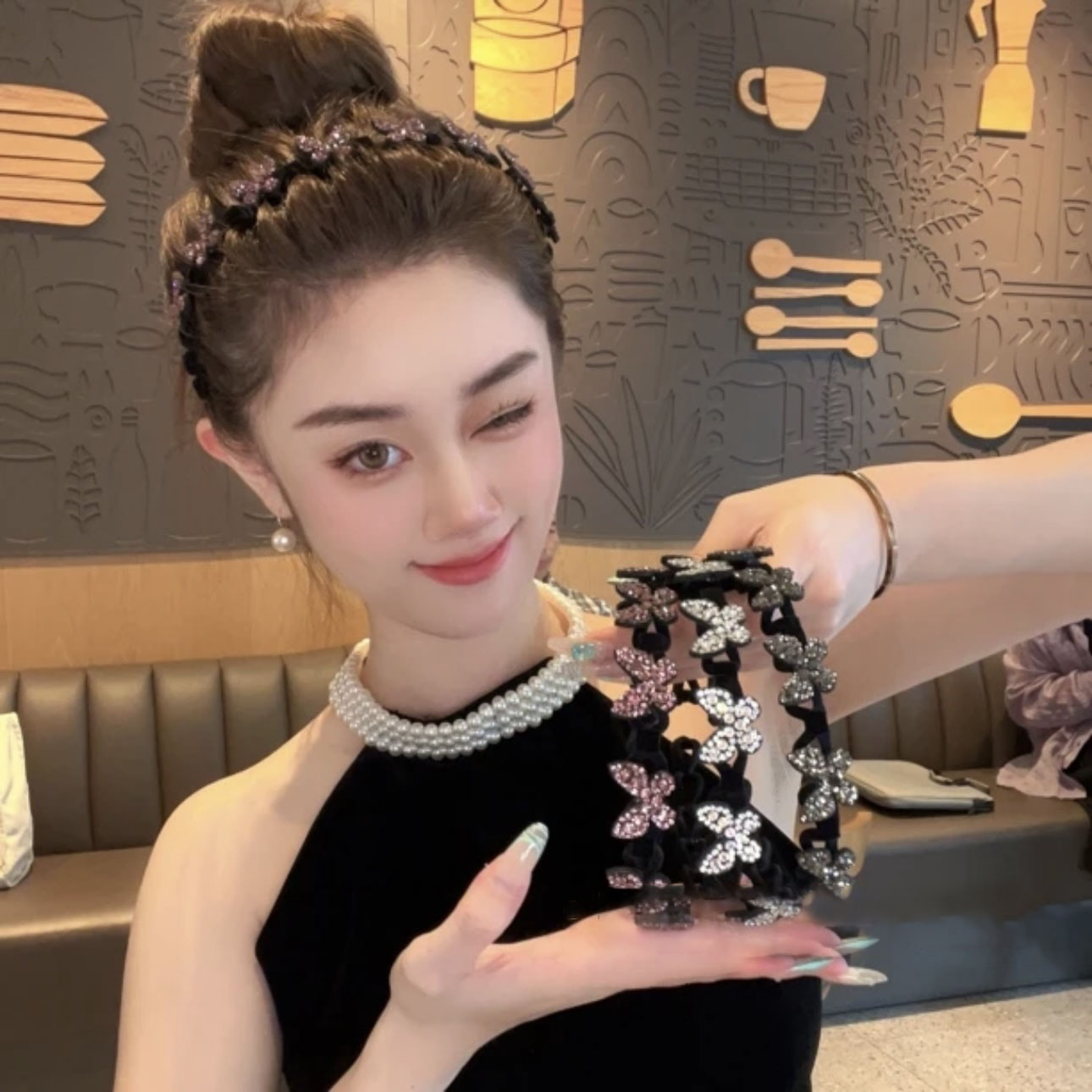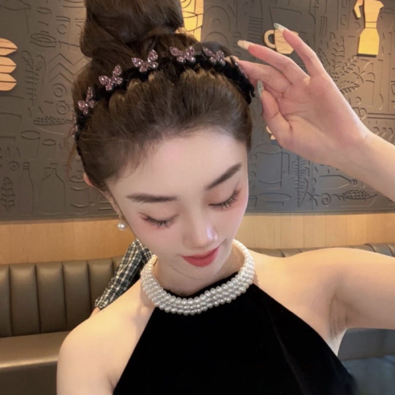 蝴蝶水鉆發(fā)箍女2024新款 帶齒防滑壓發(fā)頭箍高級感碎發(fā)整理神器發(fā)卡