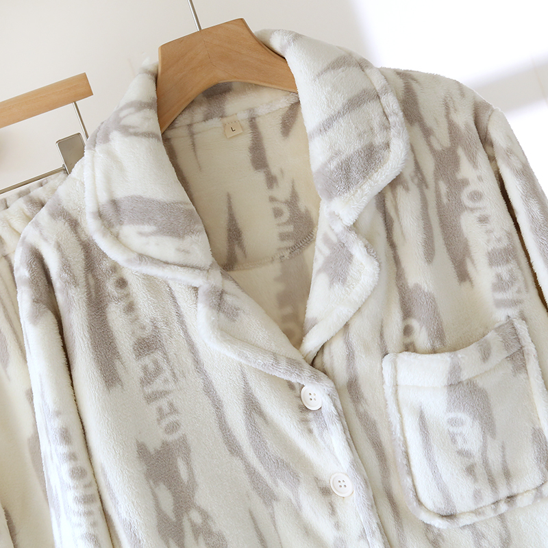 可外穿冬季 斑馬紋法蘭絨家居服套裝 男女情侶睡衣珊瑚絨加厚加絨暖