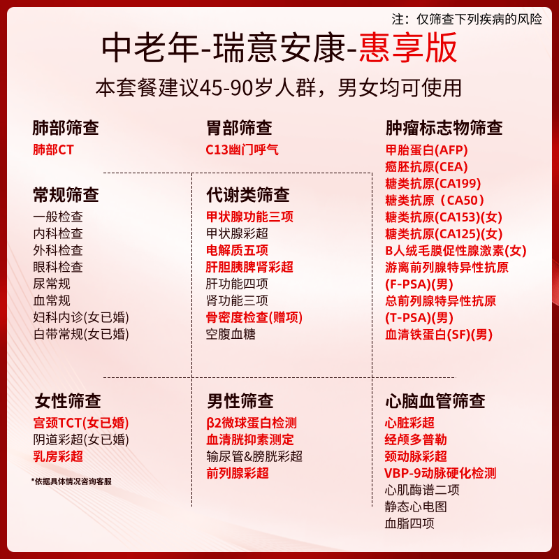 瑞慈健康優(yōu)選D體檢套餐中青老年男女報告全國70門店通用年度深篩