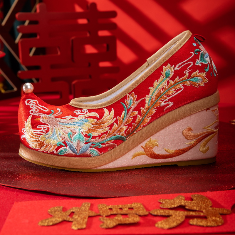 為您提供商品坡跟秀禾漢服婚鞋 舞繡緣婚鞋 中式 高跟布鞋 紅色重工刺繡新娘繡花鞋的詳細(xì)介紹,
