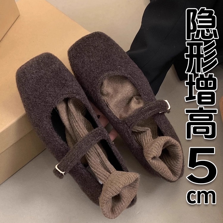 豆豆鞋 法式 女鞋 一字扣加絨單鞋 絨面內(nèi)增高5CM復(fù)古瑪麗珍毛毛鞋 女