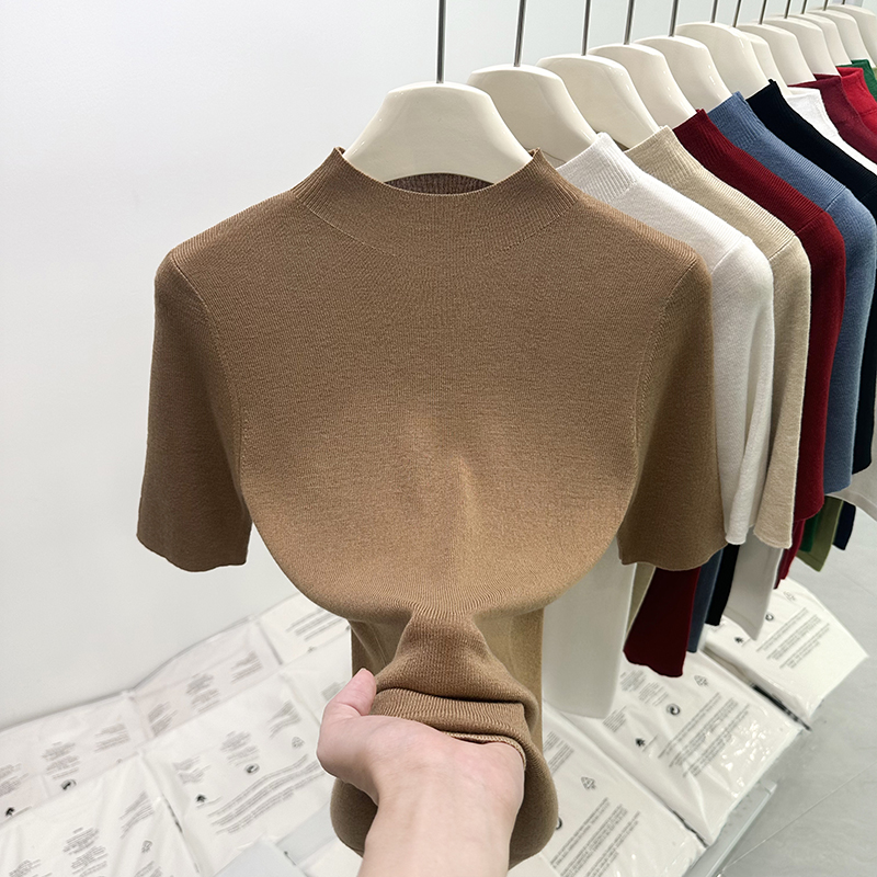 洋氣修身 顯瘦氣質(zhì)五分袖 針織衫 打底衫 女春秋新款 半高領(lǐng)羊毛中袖