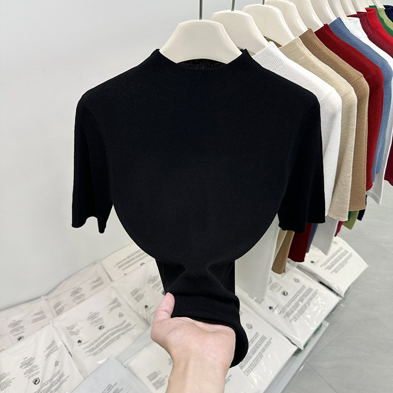 新款 淺灰色半高領(lǐng)打底衫 內(nèi)搭毛衣2025秋冬季 針織修身 女裝 黑小上衣