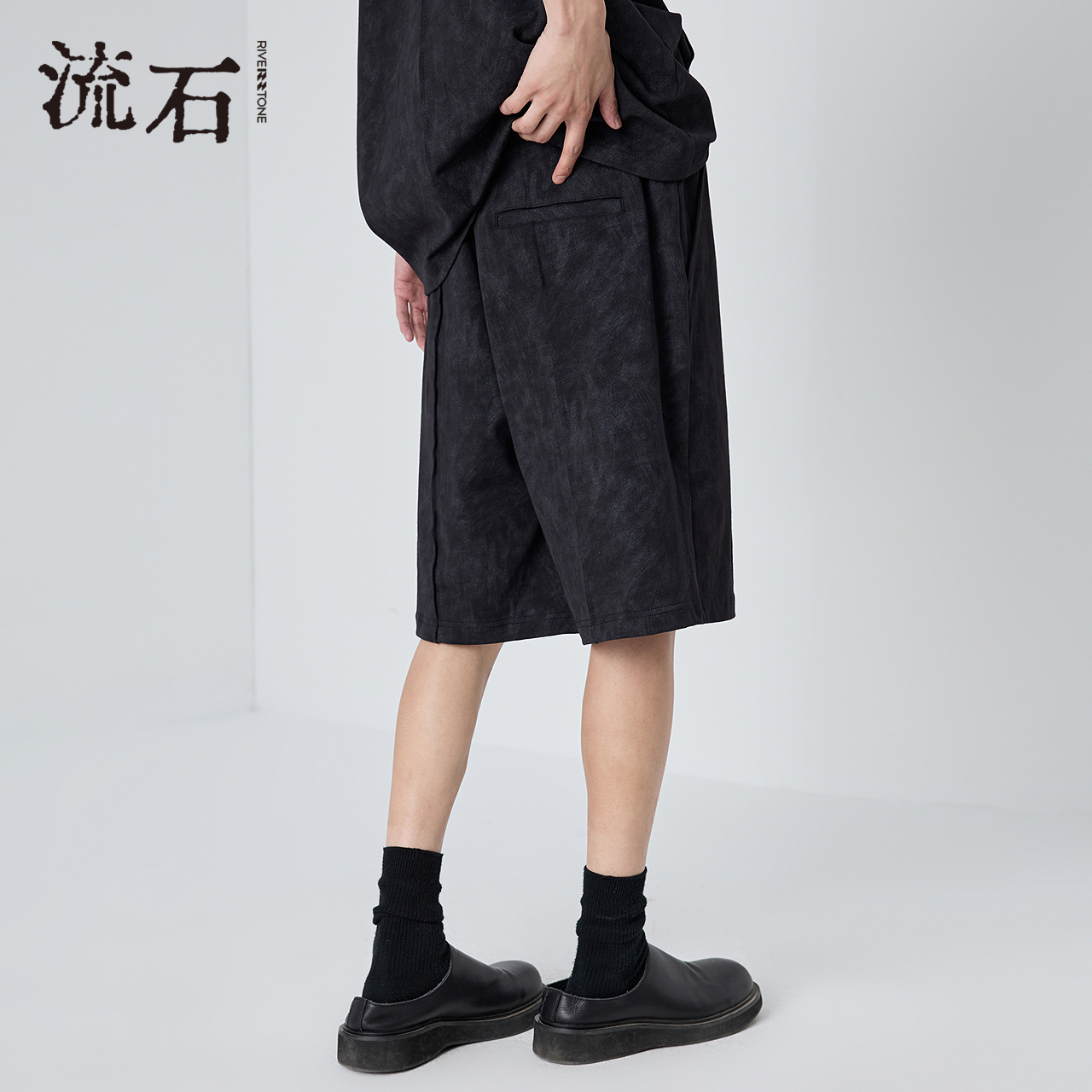 為您提供商品男士 流石男裝 2025年新款 設計感透氣高級感直筒褲 扎花重磅休閑短褲的詳細介紹,