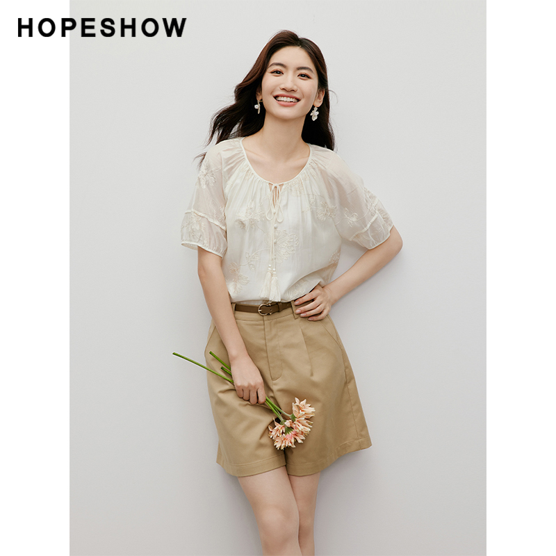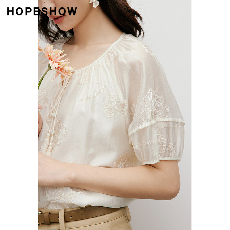為您提供商品圓領(lǐng)短袖 紅袖 套頭上衣hopeshow2024夏新款 襯衫 韓系刺繡插肩袖 女的詳細介紹,