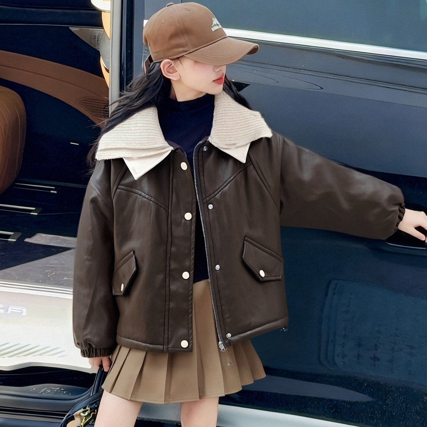 女童皮衣棉服2025秋冬新款 兒童洋氣時(shí)髦加厚棉衣中大童加絨厚外套