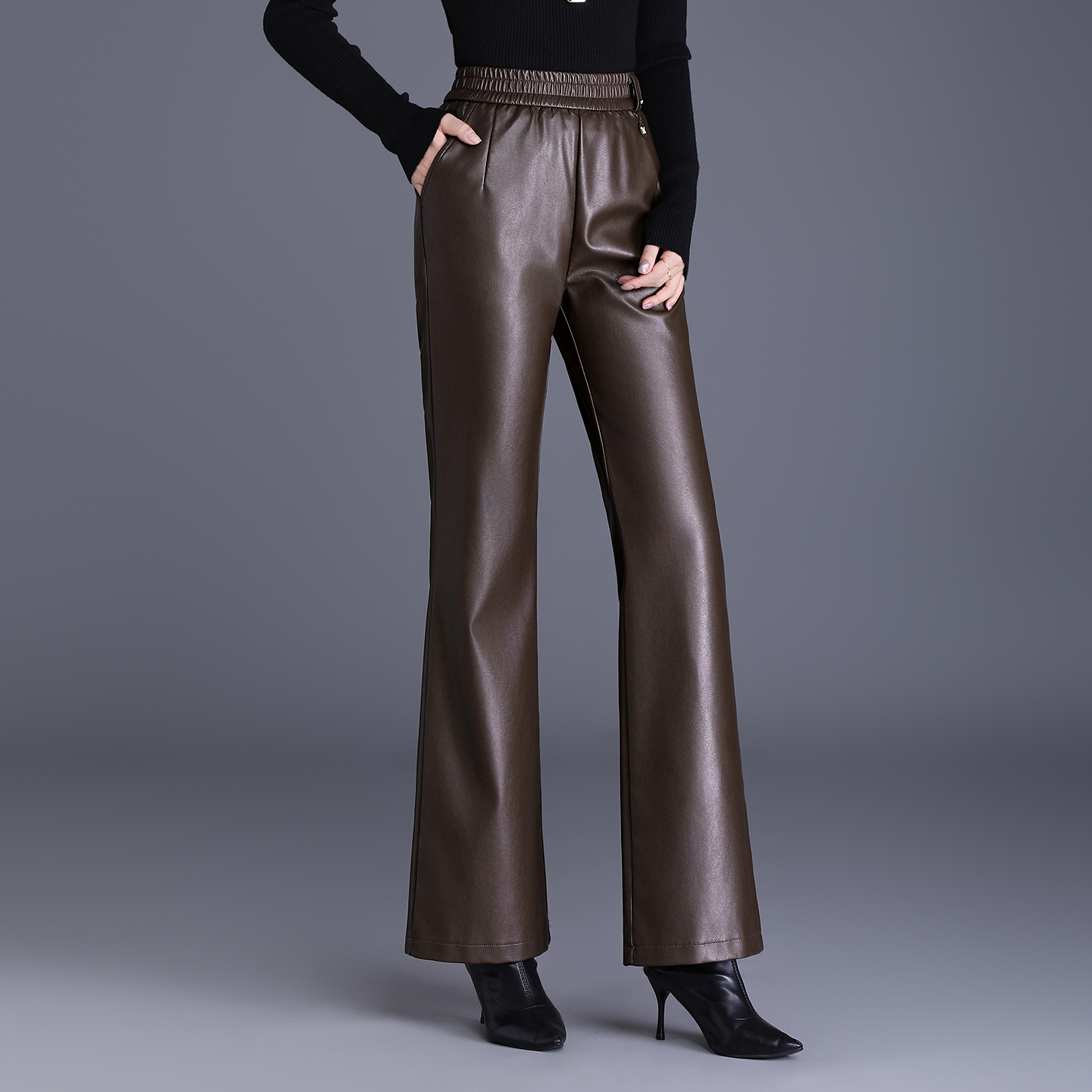顯瘦百搭PU皮喇叭褲 冬新款 加絨高腰松緊腰修身 微喇皮褲 女秋季 長(zhǎng)褲抖音小紅書同款網(wǎng)紅熱銷 - 皮褲 - 淘寶網(wǎng)