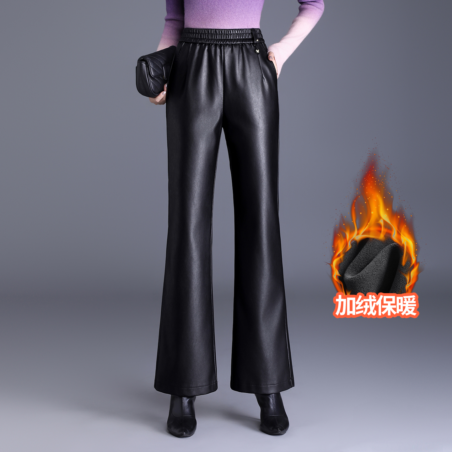 為您提供商品長(zhǎng)褲 加絨高腰松緊腰修身 女秋季 顯瘦百搭PU皮喇叭褲 冬新款 微喇皮褲的詳細(xì)介紹,