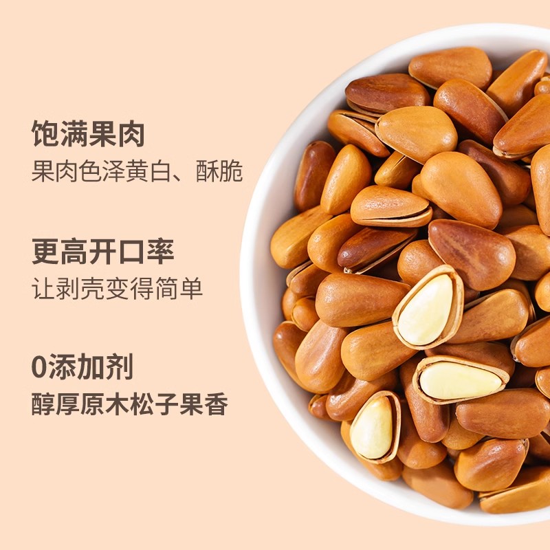 百草味東北松子堅果手剝干果仁休閑零食特產(chǎn)小吃手拔開口大顆