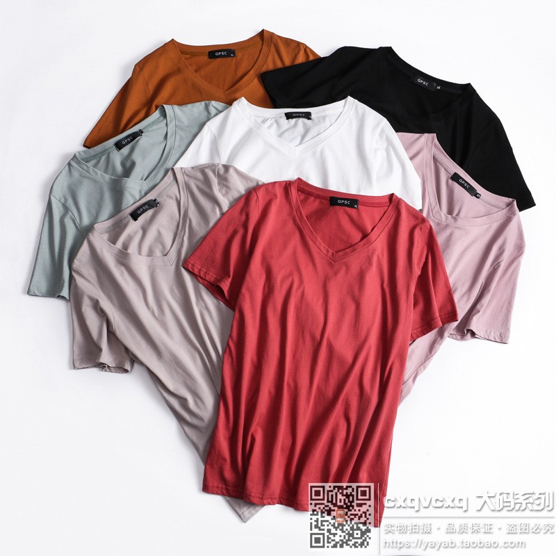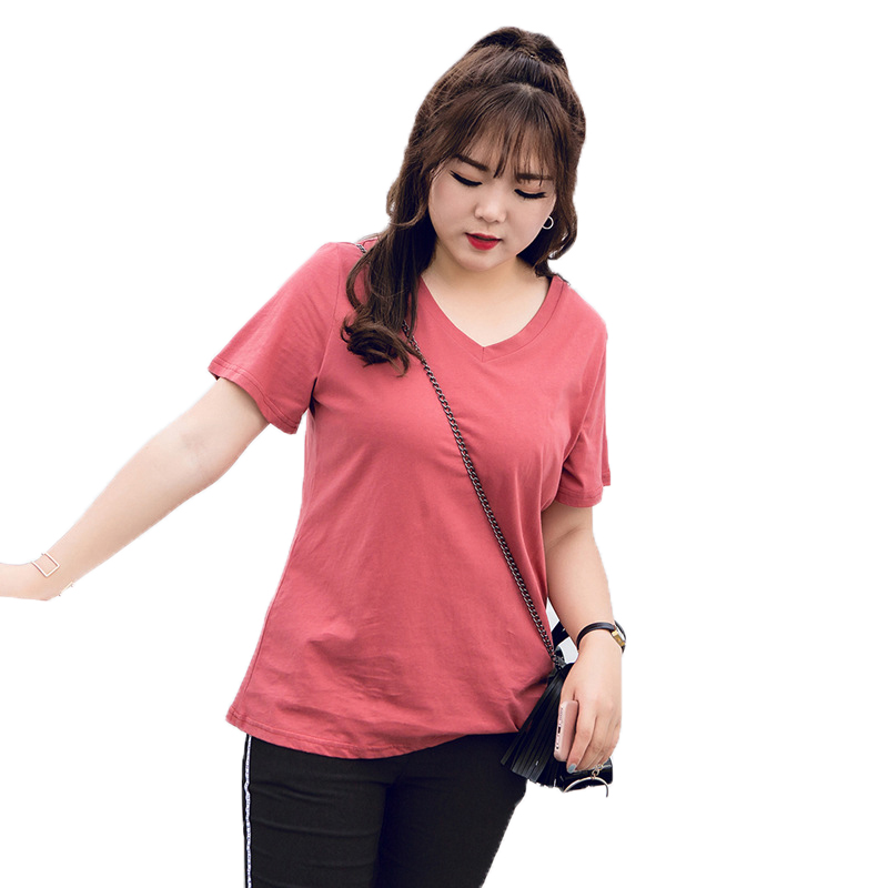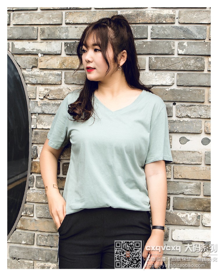 打底衫 女裝 T恤胖MM200斤寬松顯瘦半袖 夏季 240斤特大碼 純棉V領(lǐng)短袖抖音小紅書同款網(wǎng)紅熱銷 - T恤 - 淘寶網(wǎng)