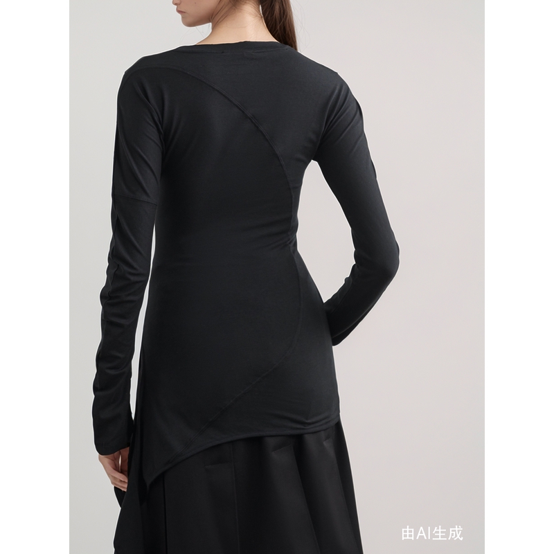 折扣 CLASSIC LOW 女黑色不對(duì)稱棉質(zhì)混紡打底衫 上衣抖音小紅書同款網(wǎng)紅熱銷 - T恤 - 淘寶網(wǎng)