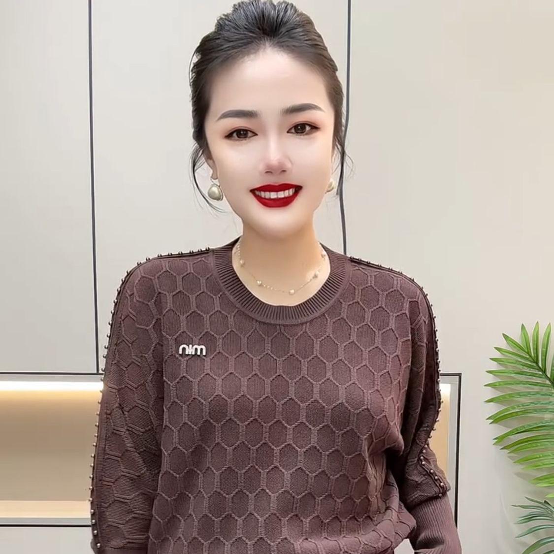 為您提供商品釘珠寬松顯瘦媽媽打底衫 2025春季 新款 蝙蝠純色遮肉針織衫 上衣減齡的詳細(xì)介紹,