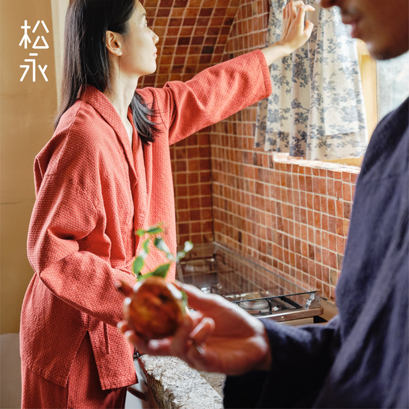 松永秋冬純棉男女情侶睡衣長(zhǎng)袖 浴衣新 漢服柔軟保暖家居服日式 長(zhǎng)褲