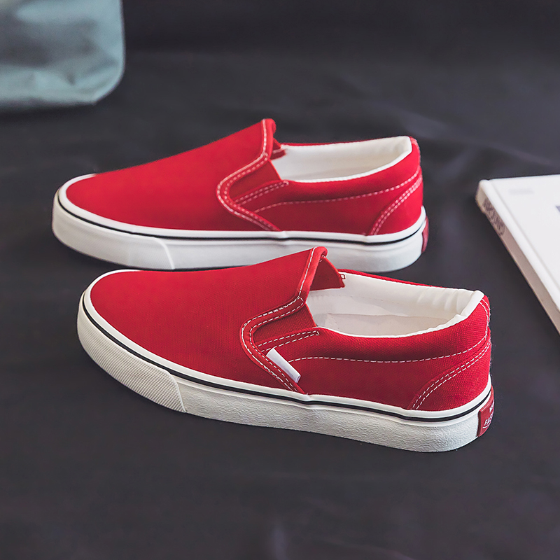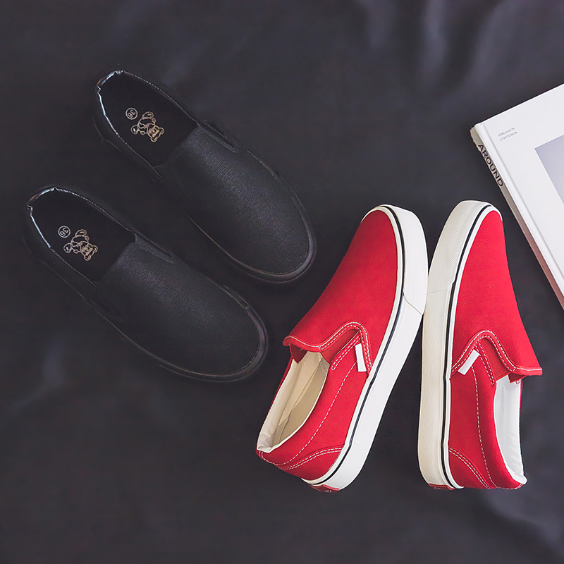 大紅色布鞋 套腳帆布鞋 休閑韓版 女全黑色工作平底鞋 一腳蹬懶人鞋 子抖音小紅書(shū)同款網(wǎng)紅熱銷(xiāo) - 帆布鞋 - 淘寶網(wǎng)