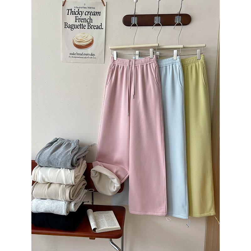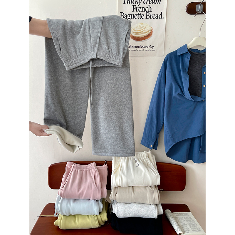 高級寬松bf慵懶垂感直筒加絨休閑闊腿褲 糯米褲 子女春秋季 2025新款