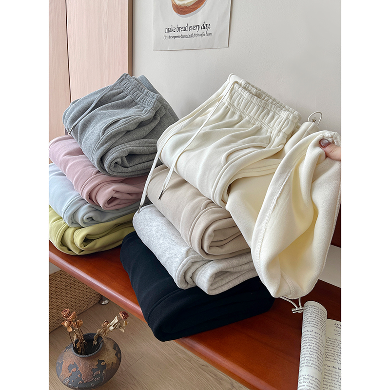 女秋冬加羊羔絨松弛拖地休閑哈倫褲 氛圍感日韓系抽繩兩穿闊腿衛(wèi)褲