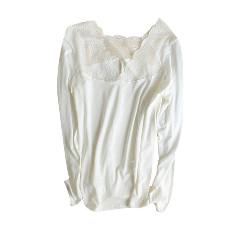 法式 柔滑舒適 基礎(chǔ)百搭 蕾絲拼接V領(lǐng)莫代爾T恤打底衫 出口單 女
