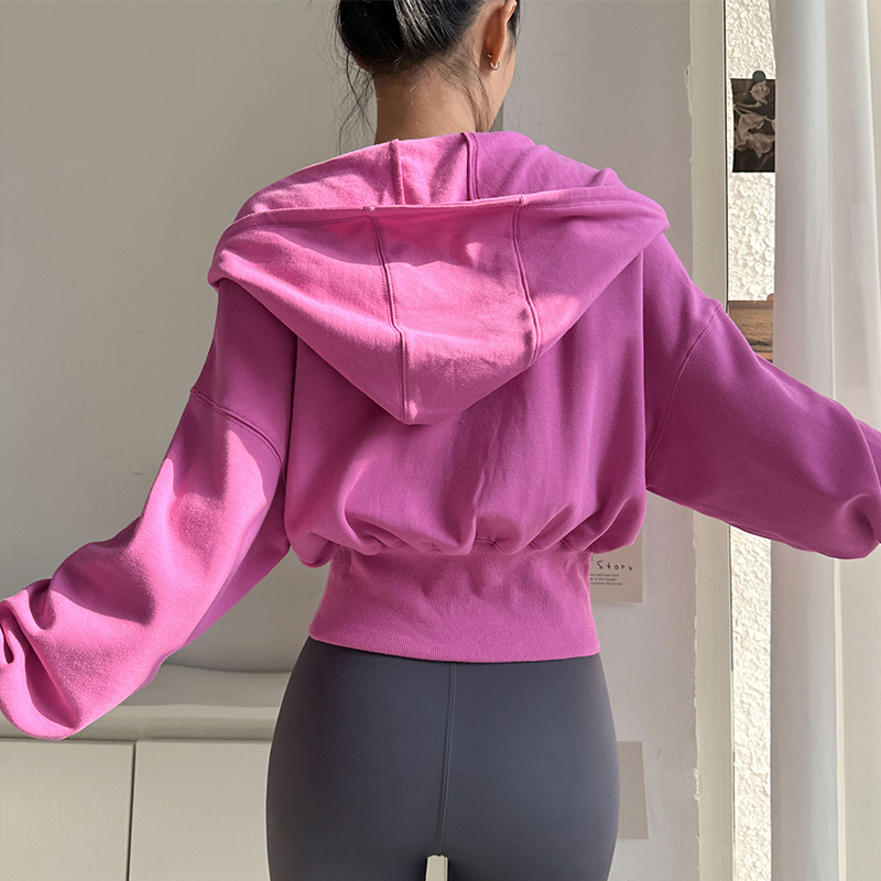 短款 收腰上衣早秋穿搭美式 秋冬新款 開(kāi)衫 修身 灰色連帽衛(wèi)衣外套女款