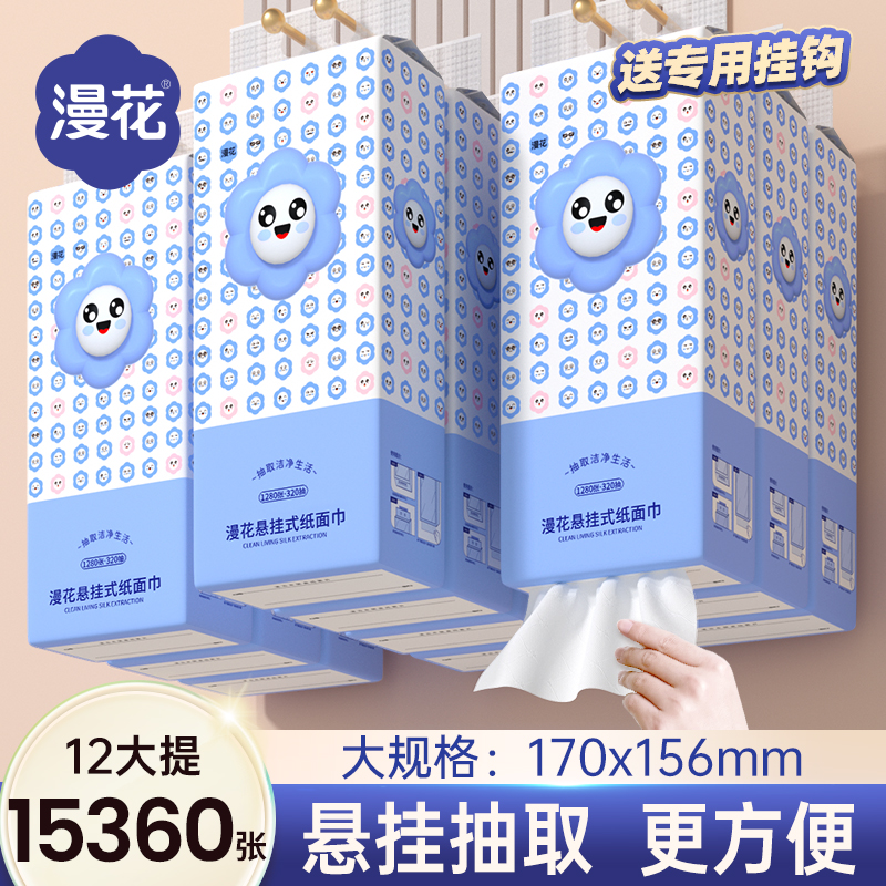 抽紙實(shí)惠裝 漫花3大提懸掛式 餐巾紙家用紙巾整箱衛(wèi)生紙可擦手sm