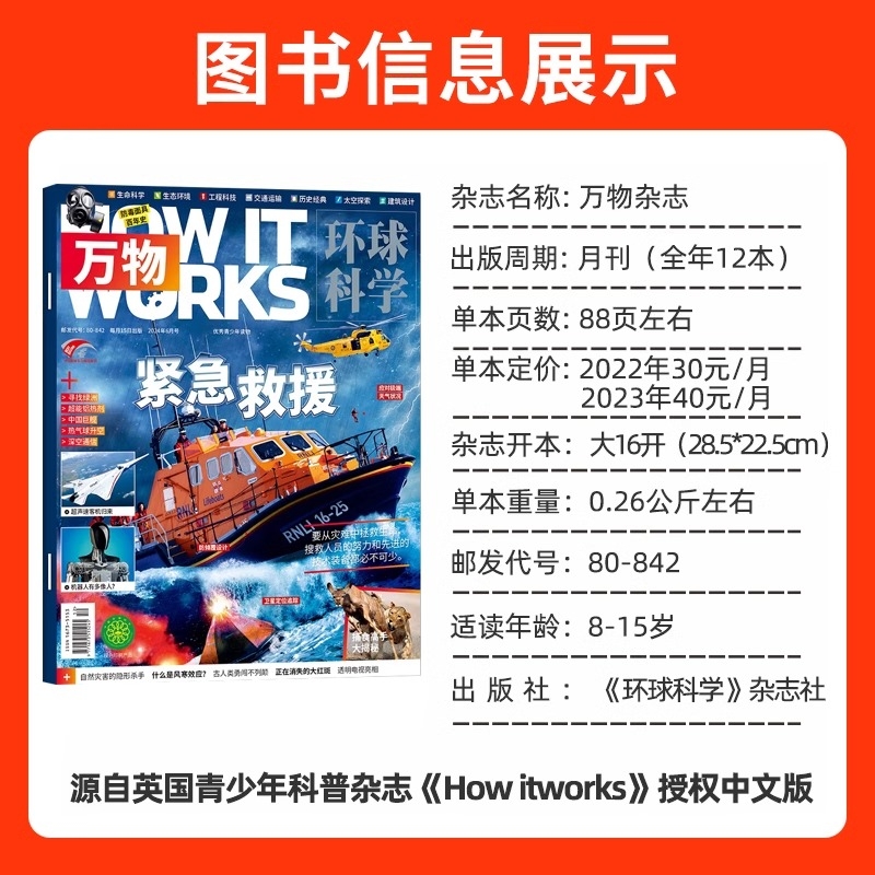 淘寶網(wǎng)為您提供商品12月送印章音頻環(huán)球科學(xué)中小學(xué)生閱讀青少年How 全年 works好奇號(hào)科普博物24過刊 半年訂閱贈(zèng)好禮 萬物雜志2025年新期現(xiàn)貨的詳細(xì)介紹,