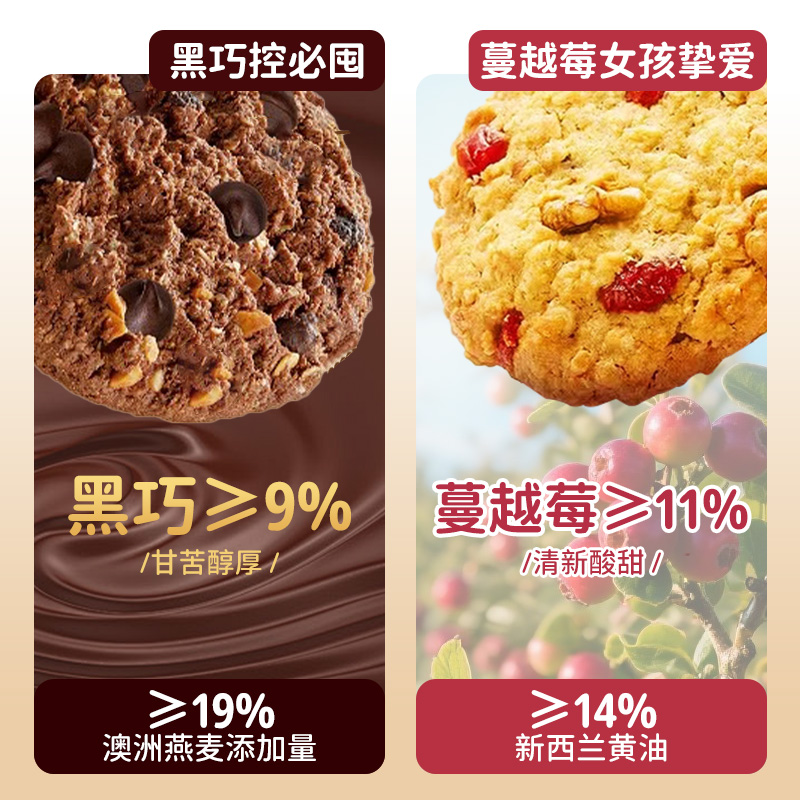 黃油燕麥曲奇餅干蔓越莓黑巧克力飽腹?fàn)I養(yǎng)早餐堅果零食獨立小包裝