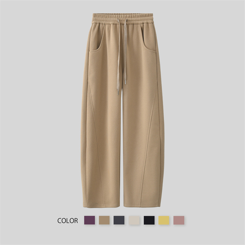 女冬季 大碼 奶芙闊腿褲 胖mm慵懶風(fēng)松弛感加絨運(yùn)動(dòng)休閑褲 黑色衛(wèi)褲 子