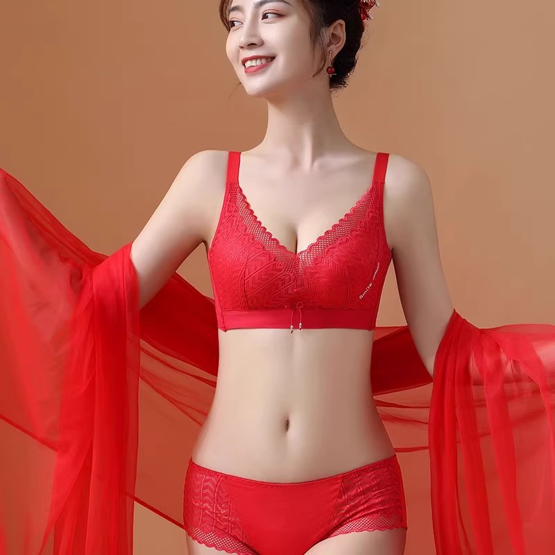 宣言本命年紅色內(nèi)衣套裝 維多利亞 女小胸聚攏無鋼圈加寬舒適