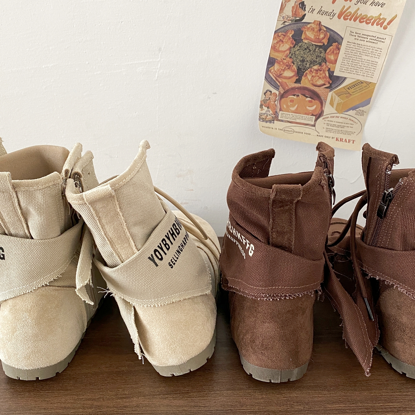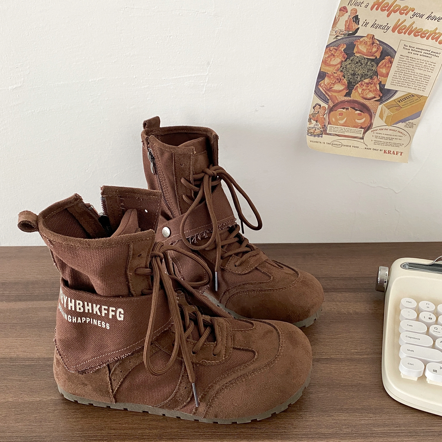 喜叔廢土風帆布馬丁靴女2025新款 短靴徒步登山靴 復古戶外工裝 秋季