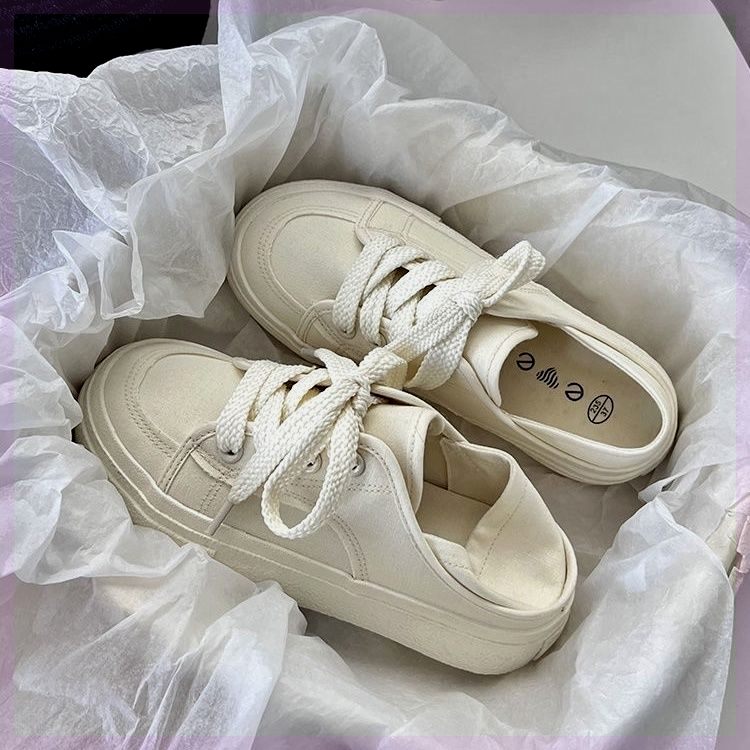 2025新款 透氣板鞋 魯魯?shù)?女款 面包鞋 春秋魔術(shù)貼帆布鞋 厚底小白鞋