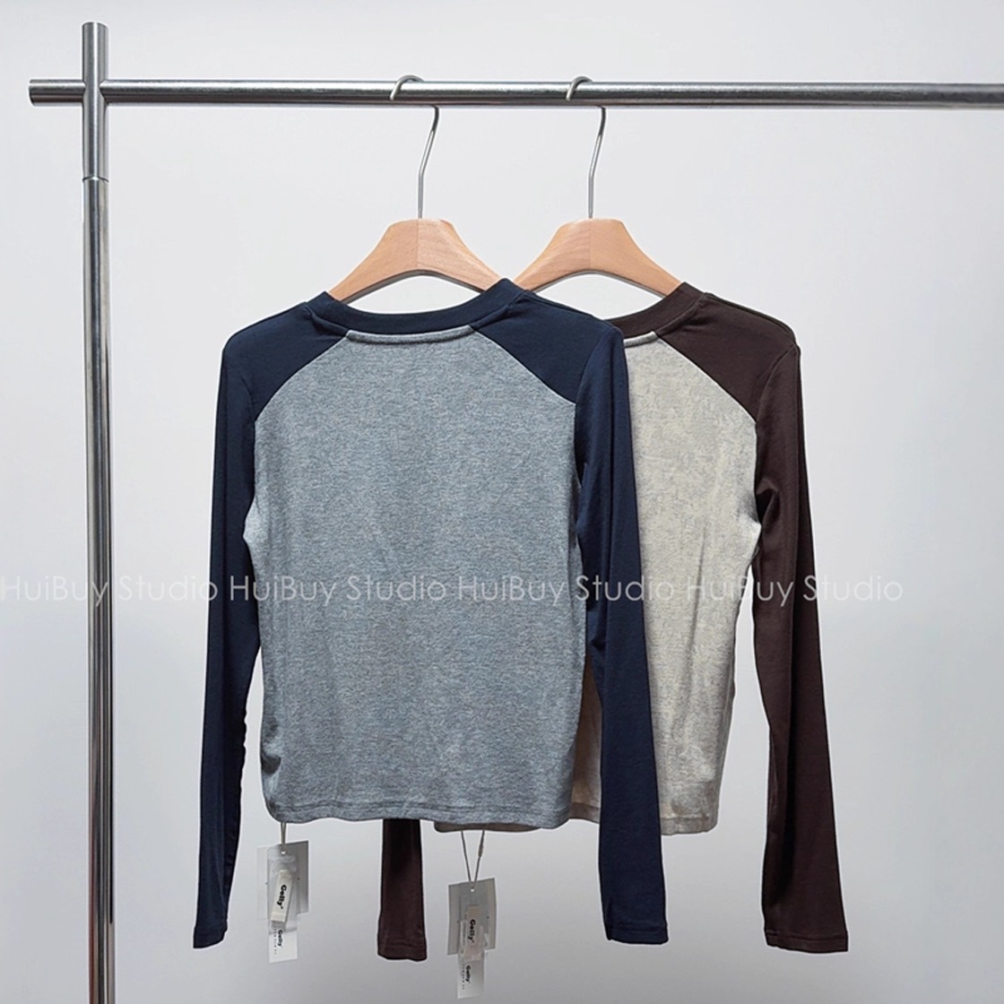 修身 設(shè)計(jì)感小眾正肩純棉長袖 T恤女春秋內(nèi)搭短款 打底衫 百搭上衣服