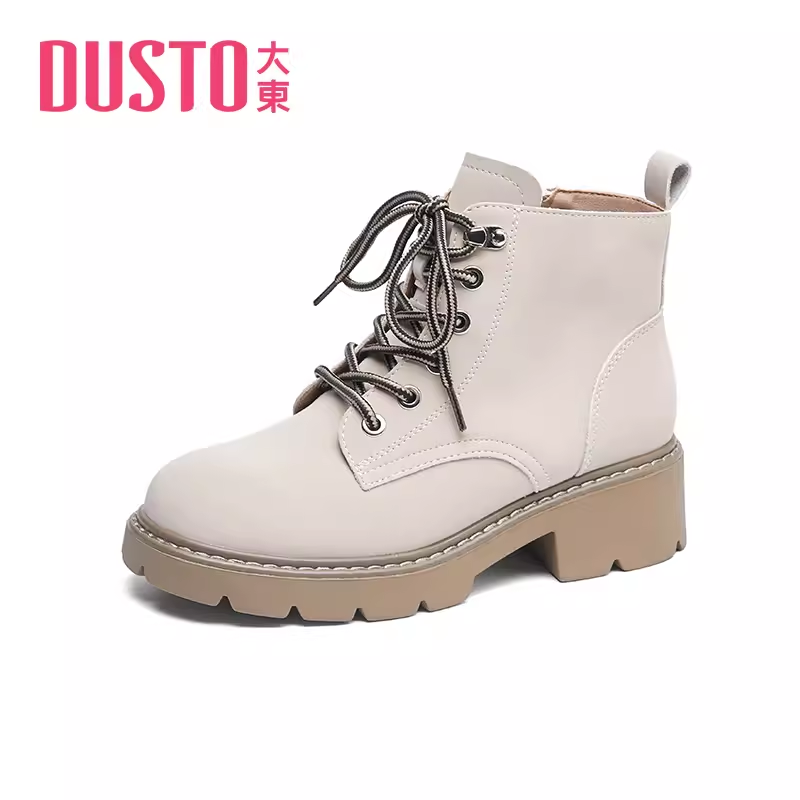 大東馬丁靴23冬季 23D1700 休閑粗跟圓頭側拉鏈橡膠底中跟女鞋 新款